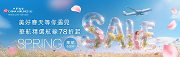 來回 單程 不同點進出 多航段 出發地 TPE (台北(桃園)) TSA (台北(松山)) RMQ (台中(清泉崗)) KHH (高雄) 目的地 更多城市 請選擇 確 定 請先選出發地 回程出發地 回程目的地 TPE (台北(桃園)) TSA (台北(松山)) RMQ (台中(清泉崗)) KHH (高雄) 更多城市 請選擇 確 定 請先選出發地 去程 回程 旅客 成人 1 2 3 4 5 6 7 8 滿12歲 兒童 0 1 2 3 4 2-11歲 嬰兒 0 1 2 3 4 5 6 7 8 2歲以下 客艙等級 不限 經濟艙 豪經艙 商務艙 航空公司 不限 CI-中華航空 AE-華信航空 JX-星宇航空 BR-長榮航空 B7-立榮航空 AA-美國航空 AC-加拿大航空 BA-英國航空 BI-汶萊航空 CA-中國國際航空 CX-國泰航空 CZ-中國南方航空 DL-達美航空 EK-阿聯酋航空 FJ-斐濟航空 FM-上海航空 HA-夏威夷航空 HU-海南航空 JL-日本航空 KE-大韓航空 LH-德航漢莎 LX-瑞士航空 LY-以色列航空 MH-馬來西亞航空 MU-中國東方航空 NH-全日空 NZ-紐西蘭航空 OS-奧地利航空 OZ-韓亞航空 PG-曼谷航空 PR-菲律賓航空 QF-澳洲航空 QR-卡達航空 RJ-約旦航空 SA-南非航空 SQ-新加坡航空 TG-泰國航空 TK-土耳其航空 UA-聯合航空 VN-越南航空 ZH-深圳航空 直飛含中停 一週最低價 搜尋 搜尋 1 從 TPE (台北(桃園)) TSA (台北(松山)) RMQ (台中(清泉崗)) TNN (台南) KHH (高雄) 到 出發日 2 從 TPE (台北(桃園)) TSA (台北(松山)) RMQ (台中(清泉崗)) TNN (台南) KHH (高雄) 到 TPE (台北(桃園)) TSA (台北(松山)) RMQ (台中(清泉崗)) TNN (台南) KHH (高雄) 出發日 增加航段+ 3 從 TPE (台北(桃園)) TSA (台北(松山)) RMQ (台中(清泉崗)) TNN (台南) KHH (高雄) 到 TPE (台北(桃園)) TSA (台北(松山)) RMQ (台中(清泉崗)) TNN (台南) KHH (高雄) 出發日 刪除 增加航段+ 4 從 TPE (台北(桃園)) TSA (台北(松山)) RMQ (台中(清泉崗)) TNN (台南) KHH (高雄) 到 TPE (台北(桃園)) TSA (台北(松山)) RMQ (台中(清泉崗)) TNN (台南) KHH (高雄) 出發日 刪除 增加航段+ 5 從 TPE (台北(桃園)) TSA (台北(松山)) RMQ (台中(清泉崗)) TNN (台南) KHH (高雄) 到 TPE (台北(桃園)) TSA (台北(松山)) RMQ (台中(清泉崗)) TNN (台南) KHH (高雄) 出發日 刪除 增加航段+ 6 從 TPE (台北(桃園)) TSA (台北(松山)) RMQ (台中(清泉崗)) TNN (台南) KHH (高雄) 到 TPE (台北(桃園)) TSA (台北(松山)) RMQ (台中(清泉崗)) TNN (台南) KHH (高雄) 出發日 刪除 客艙等級 不限 經濟艙 豪經艙 商務艙 航空公司 請選擇 CI-中華航空 AE-華信航空 JX-星宇航空 BR-長榮航空 B7-立榮航空 AA-美國航空 AC-加拿大航空 BA-英國航空 BI-汶萊航空 CA-中國國際航空 CX-國泰航空 CZ-中國南方航空 DL-達美航空 EK-阿聯酋航空 FJ-斐濟航空 FM-上海航空 HA-夏威夷航空 HU-海南航空 JL-日本航空 KE-大韓航空 LH-德航漢莎 LX-瑞士航空 LY-以色列航空 MH-馬來西亞航空 MU-中國東方航空 NH-全日空 NZ-紐西蘭航空 OS-奧地利航空 OZ-韓亞航空 PG-曼谷航空 PR-菲律賓航空 QF-澳洲航空 QR-卡達航空 RJ-約旦航空 SA-南非航空 SQ-新加坡航空 TG-泰國航空 TK-土耳其航空 UA-聯合航空 VN-越南航空 ZH-深圳航空 旅客 成人 1 2 3 4 5 6 7 8 滿12歲 兒童 0 1 2 3 4 2-11歲 嬰兒 0 1 2 3 4 5 6 7 8 2歲以下 直飛含中停 搜尋 搜尋 最新消息 2023/02/20常用航空行李公斤數資訊 2019/04/11IATA國際航空運輸協會第830d號重要規範 更多 航空公司 長榮航空 中華航空 國泰航空 大韓航空 荷蘭航空 德航漢莎 紐西蘭航空 菲律賓航空 新加坡航空 泰國航空 日本航空 星宇航空 c中華航空 春季促銷 GO c長榮航空 開工大吉 GO c阿聯酋航空 台北杜拜航線豪華經濟艙3/15啟航 GO c土耳其航空 全航點優惠促銷中 GO c留言板 GO c各國簽證辦理 GO
